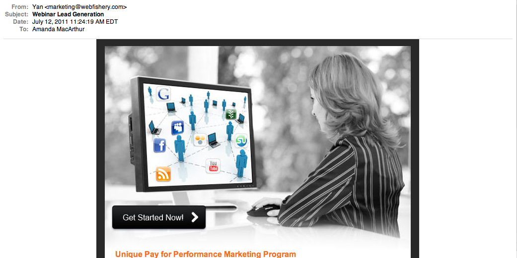 Let’s talk about what a user gets from this email and why they may never scroll down to find out more about the webinar that they’re offering: