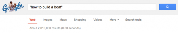 To find out if the keyword we’ve found is valuable, we head to Google.com and enter the keyword phase in quotes (exact match) and hit “search.”