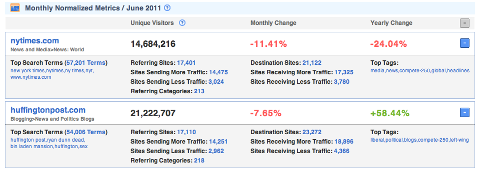Precisely. Do people trust the New York Times more than The Huffington Post, simply because it’s in print? I’m going to go out on a limb and say not anymore, considering that Huffington Post has 40% more unique visitors per month.
