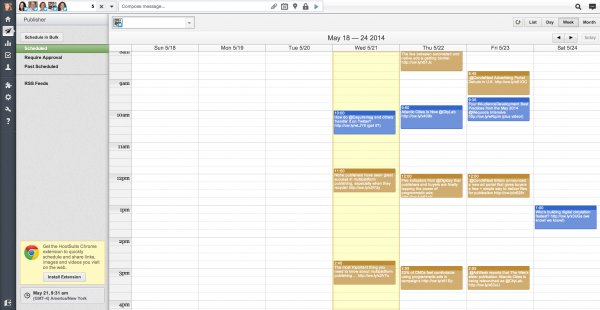 4. Hootsuite has a drag-and-drop calendar. The calendar is one my favorite features. You can see all of your scheduled Tweets in one place, and if they happen to overlap – or you don’t like where a post was auto-scheduled – then you can drag and drop it onto a different day and time.
