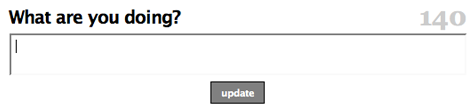 You use this to type what you’re doing in 140 characters or less. Below this box, you have an RSS feed of all of your Twitter friends. Every time they send a “tweet” aka update on Twitter (or through the popular Twitter reader, twhirl), you get an update.