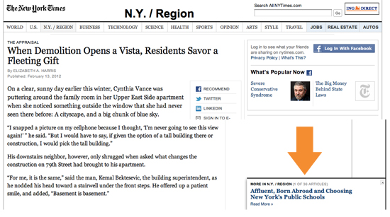 One goal that digital publishers have is to keep readers reading and clicking, and The New York Times has a clever feature that entices readers to do just that.