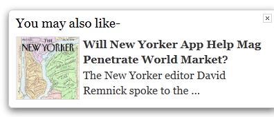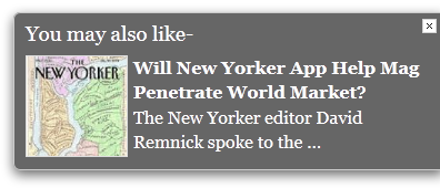 If you want to use this same strategy in WordPress, there’s a plugin called nRelate Flyout that creates the same effect seen on NYTimes.com. The plugin automatically analyzes your articles and serves up related posts for you. You have several style options available, and below are a few variations: