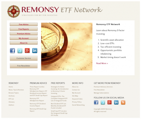 The latest example of a Mequoda-compliant site that Graeber and her team have built is the Remonsy ETF Network site, an investing advice site focused on exchange traded funds, founded by Tom Vaughan, a longtime, highly successful stock advisor and investor in his own right.