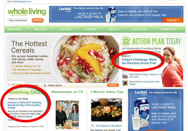 Even Martha Stewart knows that evergreen content—like the articles published on Whole Living—need to take priority on the homepage. Look how they’re telling folks (above the fold) about their daily content: