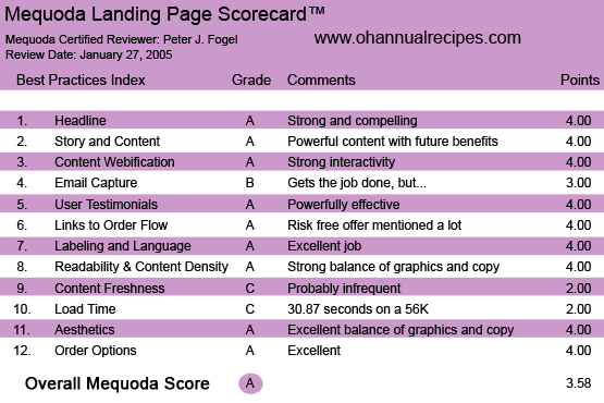 Ohannualrecipes.com’s Landing Page Scorecard
