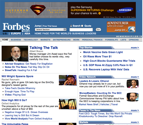 Forbes.com aggressively invites visitors to start a relationship. Some components:
